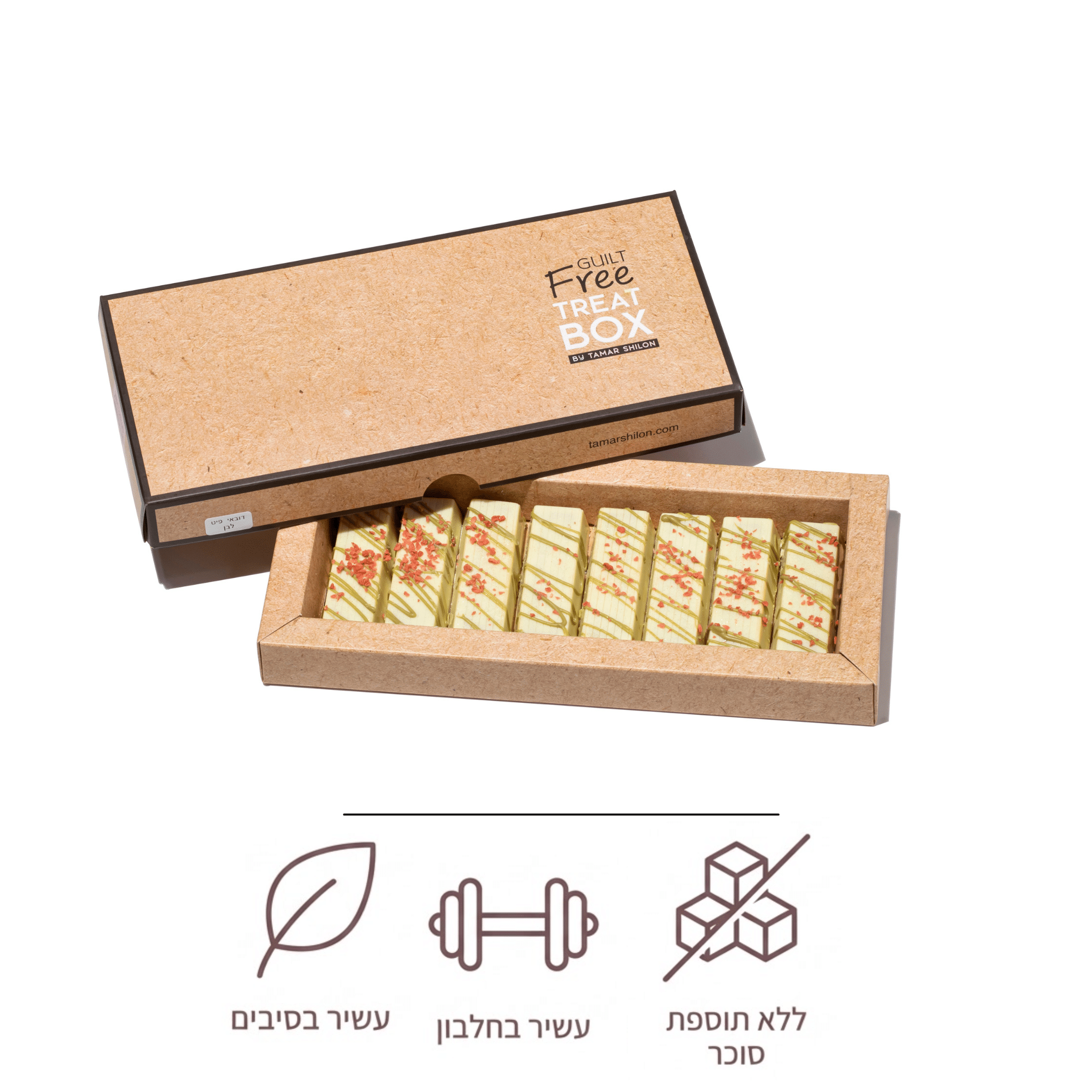 8 יחידות של 30 גרם כל אחת – מושלם לפינוק יומי או כמתנה מתוקה במיוחד.