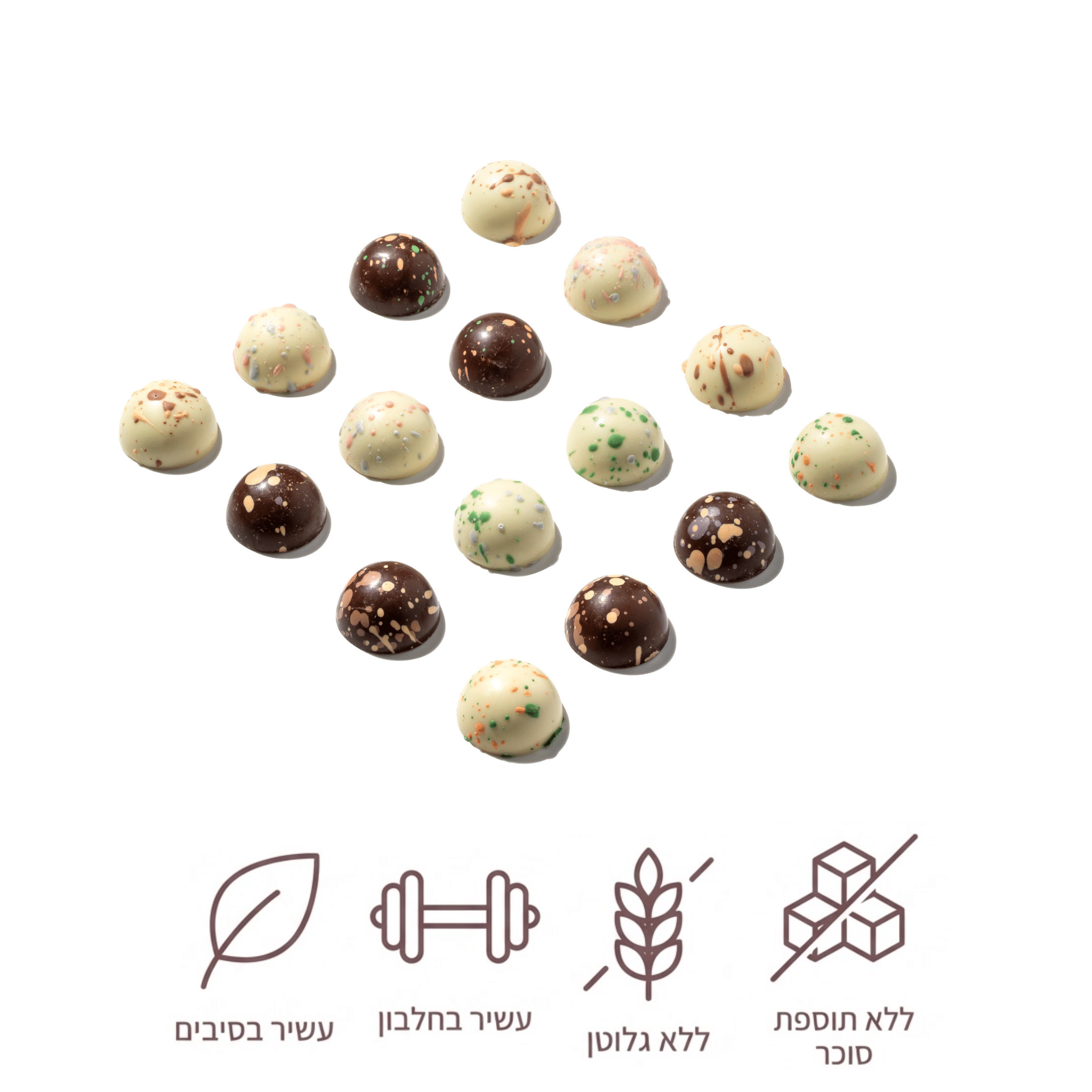 🍫 ללא תוספת סוכר, עשירים בחלבון ומועשרים בסיבים תזונתיים.