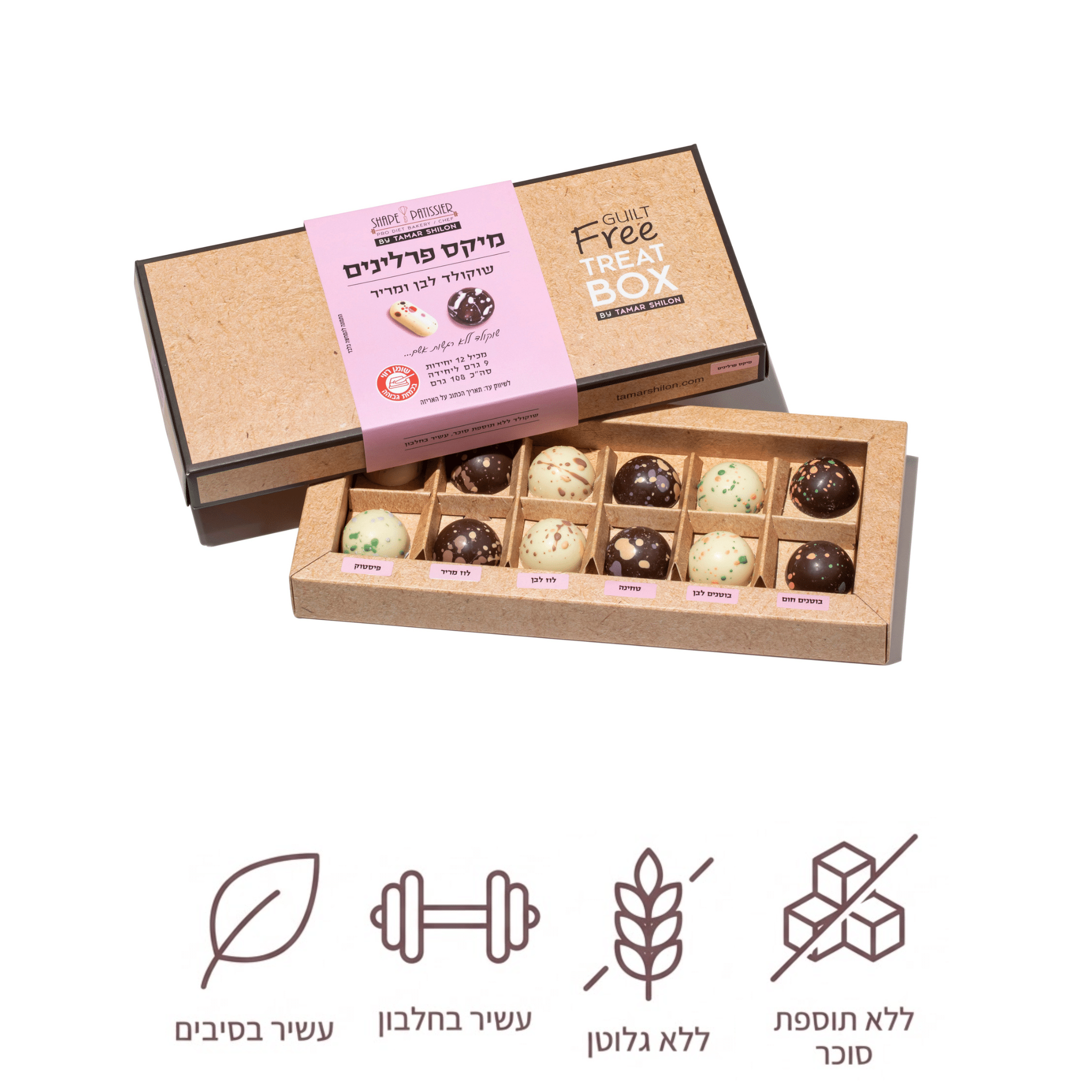 מיקס פרלינים איכותי באריזת מתנה מהודרת – 12 יחידות ב־6 טעמים שונים מהמובילים שלנו.